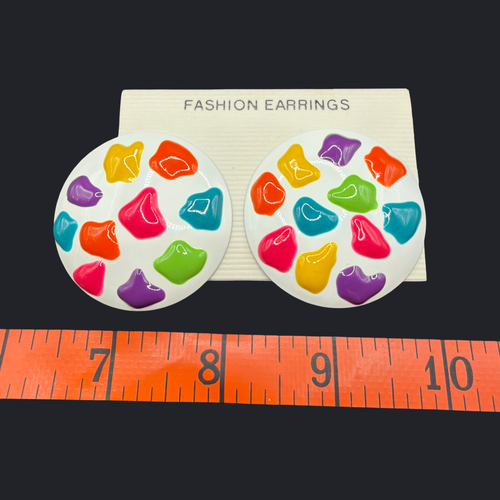 1980'S MULTI COLORED ROUND EARRINGS